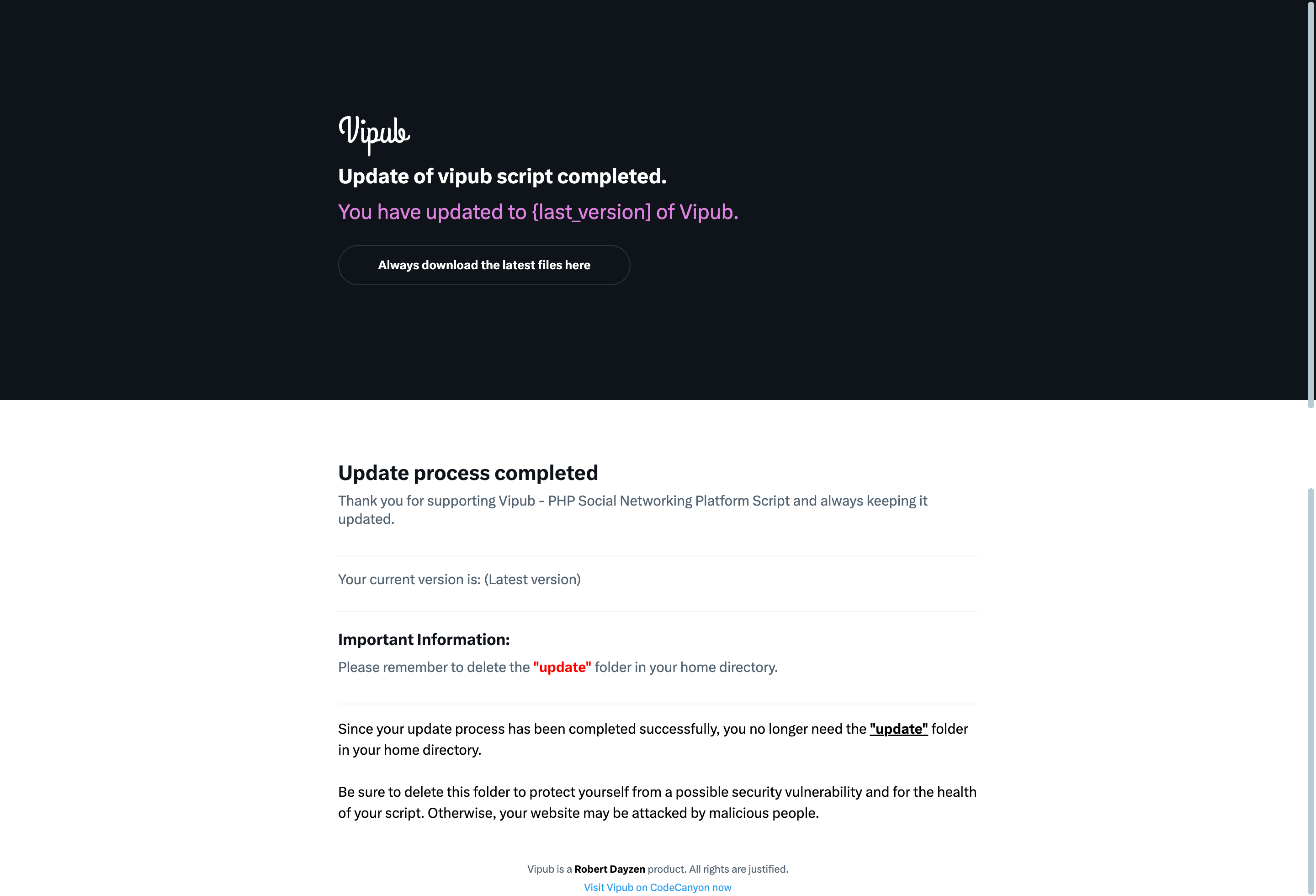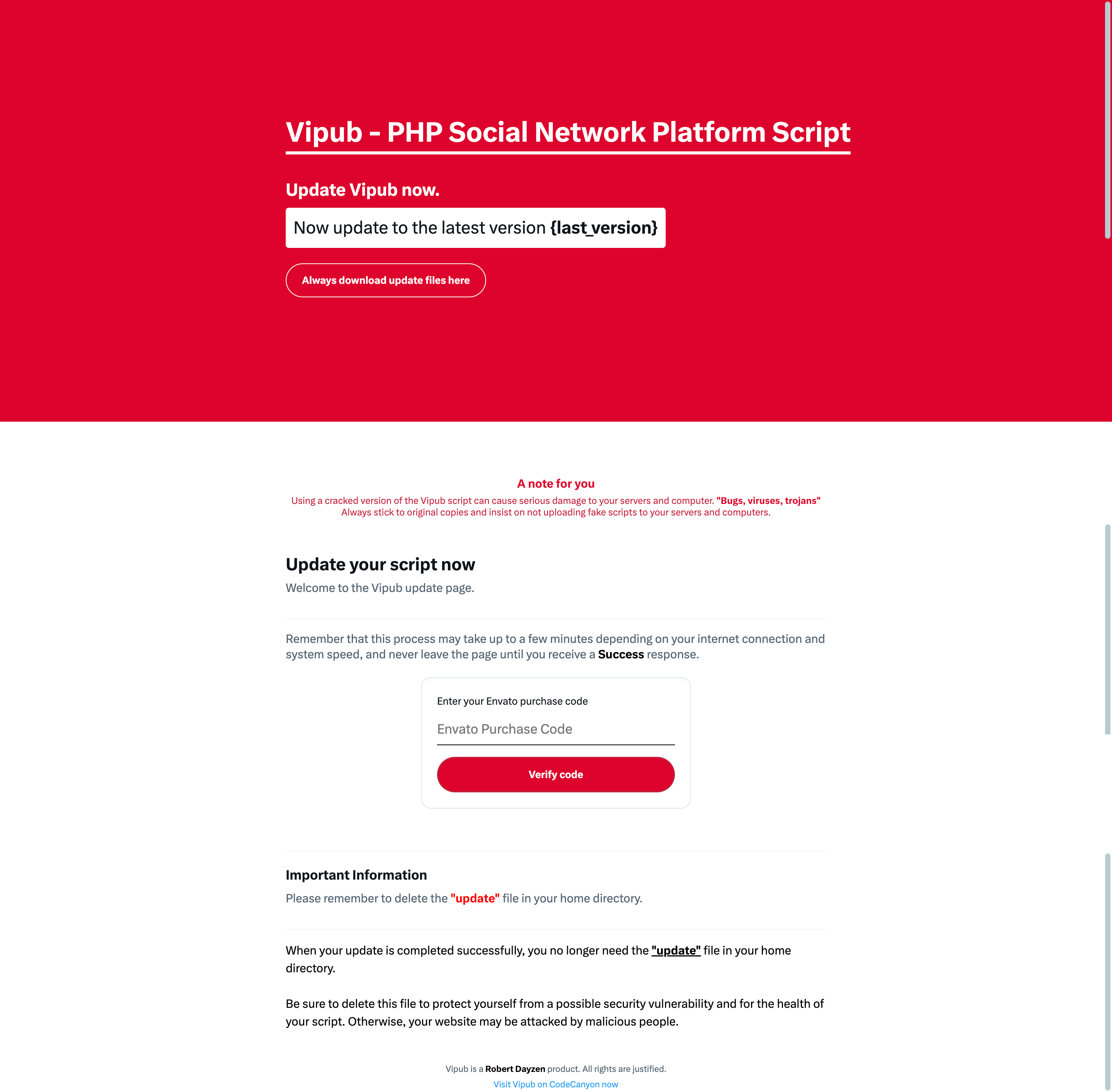 Important! This is the only official Vipub PHP Script, please stay away from any cracked, nulled or stolen copies, they may contain malwares.